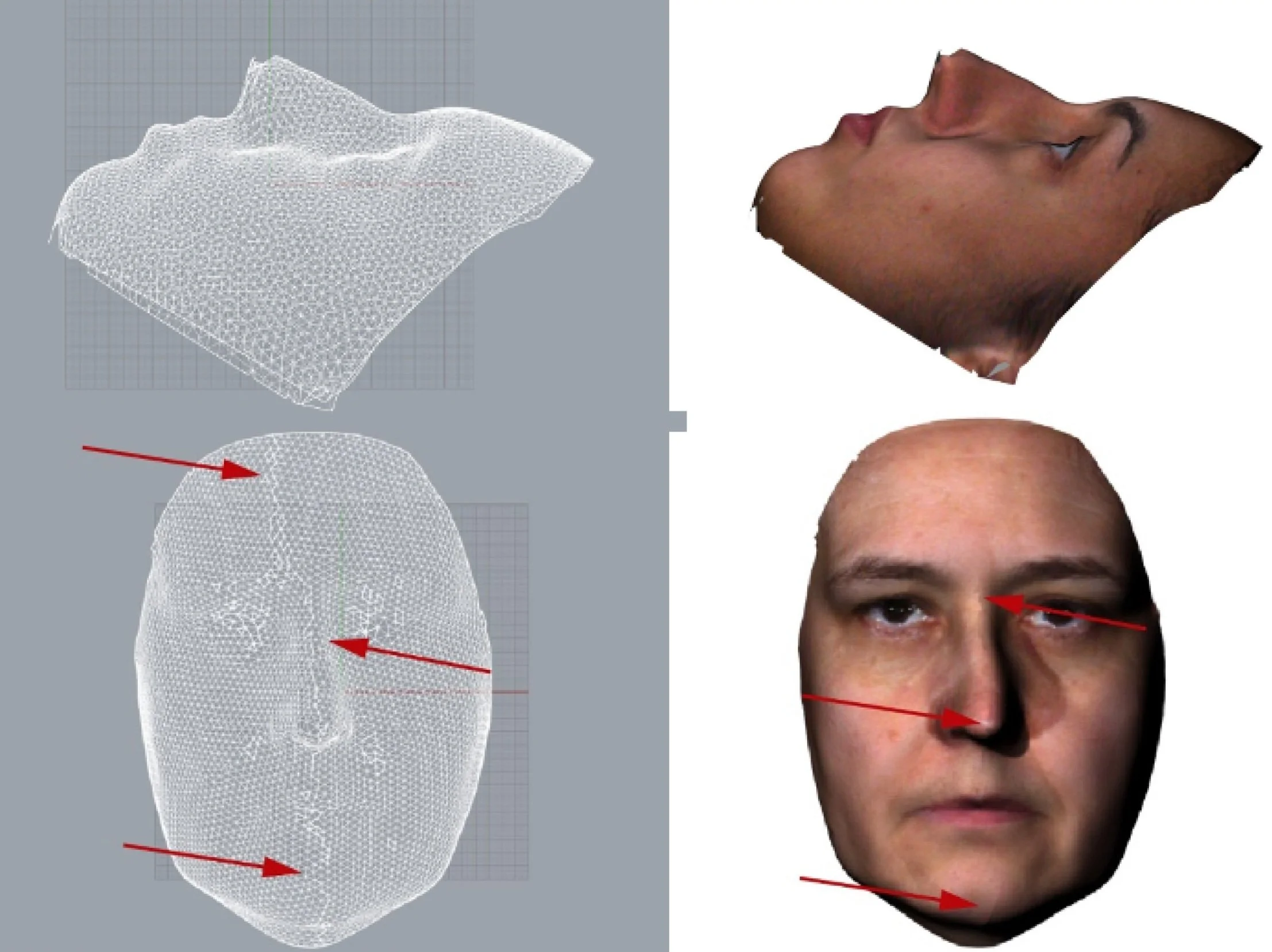 Encountered problem: Flaws in the model mesh indicated potential data inaccuracy. To determine scale/proportion accuracy, additional measurements were taken & compared to a published anthropometric dataset. these included: